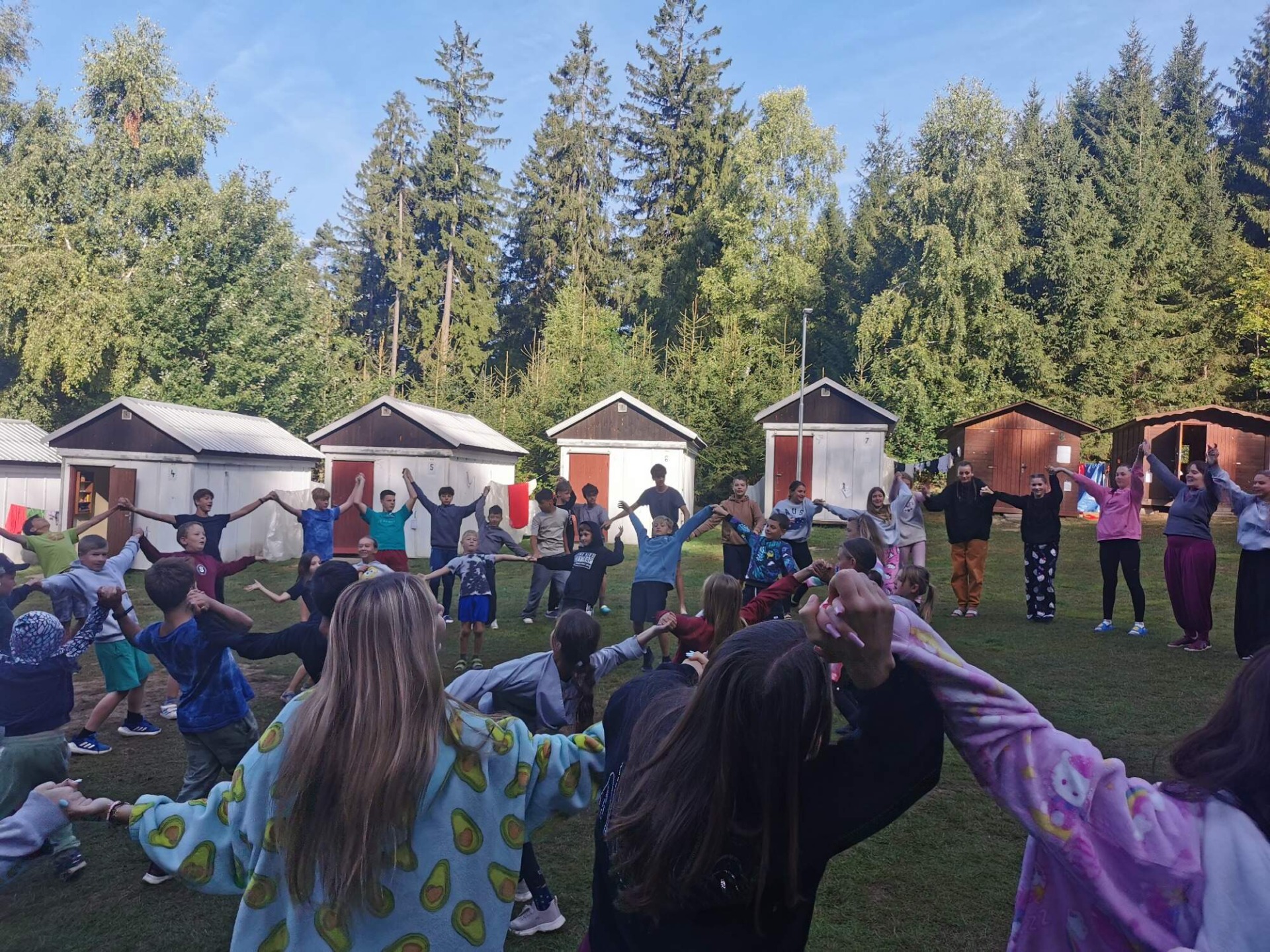 Ráno se všichni probudí, společně se protáhnou za doprovodu hudby, poté si jdou vyčistit zuby, uklidí si stany a nakonec se jde na snídani.Dopolední program